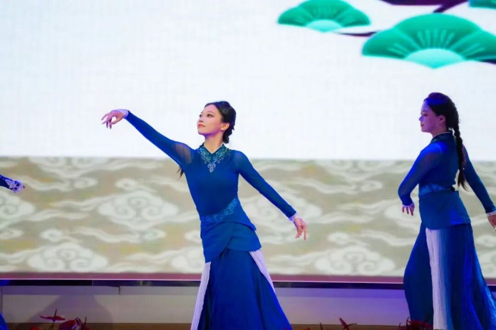 青花艺术团展示舞蹈《喜上枝头》。优美的舞姿、柔和的音乐为全体师生带来一场沉浸式的文化体验。