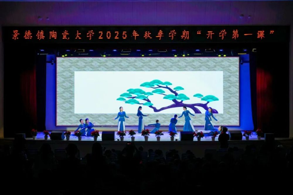在《景德镇陶瓷大学校歌》的大合唱歌声中,景德镇陶瓷大学2025年秋季学期“开学第一课”落下帷幕。