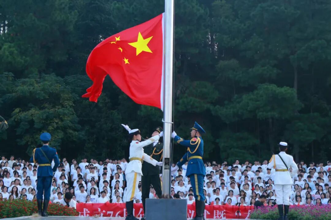 10月1日上午,南昌大学在树人广场举行“我和祖国共成长”庆祝中华人民共和国成立76周年升国旗仪式,厚植师生爱国情怀,同筑民族复兴根基。师生代表3000余人参加活动,共同见证五星红旗冉冉升起的庄严时刻。