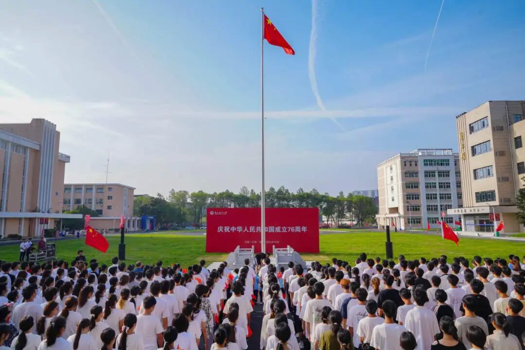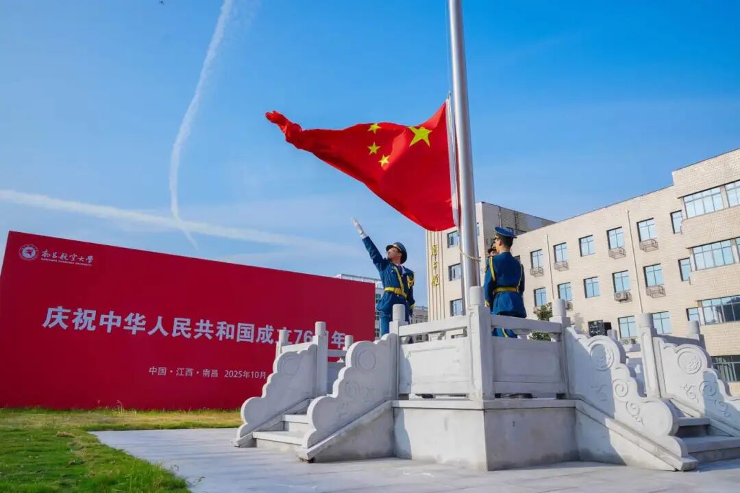 为热烈庆祝中华人民共和国成立76周年,10月1日清晨,南昌航空大学在前湖校区东大门航空文化广场与上海路校区教学主楼前火箭广场同步举行国庆升旗仪式。全体校领导,各职能部门和学院负责同志、师生代表参加,大力弘扬爱国主义精神,激发民族自豪感,凝聚奋进力量。