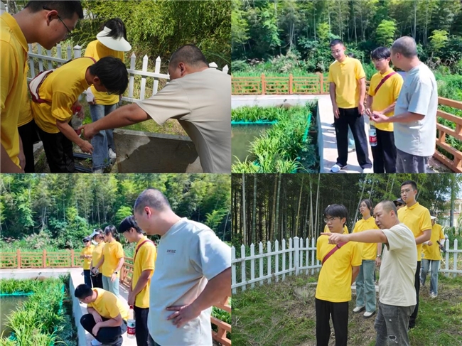 随后,实践队实地走访港口村,调研污水处理项目。队员们重点探访了由过滤池、调节池、水酸化处理池和人工湿地组成的“四合一”污水处理工艺,见证了污水变清流的全过程。实践队员意识到,凝练的“浮梁经验”为同类地区污水处理提供了借鉴,未来将此作为范本更好地守护乡村绿水生态。