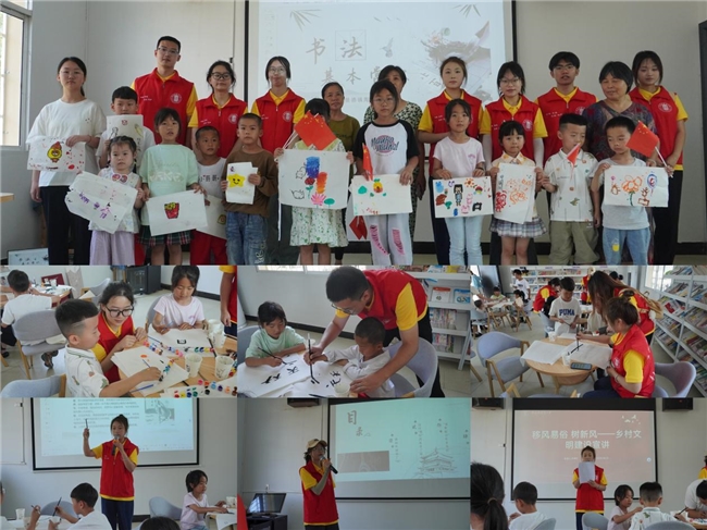 6月26日,实践队走进书屋,为孩子们开展了“乡村儿童共上一课”特色活动,将书法的墨香与绘画的色彩带入乡村课堂。队员们充分发挥专业所长,通过生动有趣的小游戏讲授书法绘画要领。