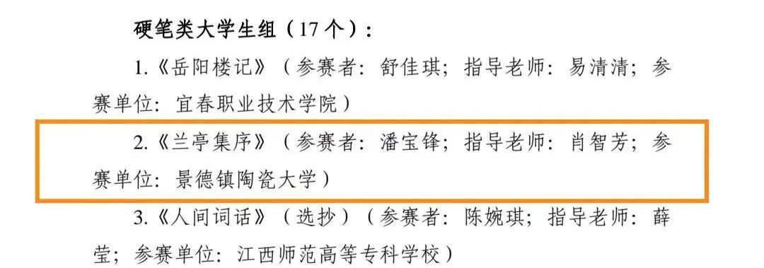 硬笔类大学生组